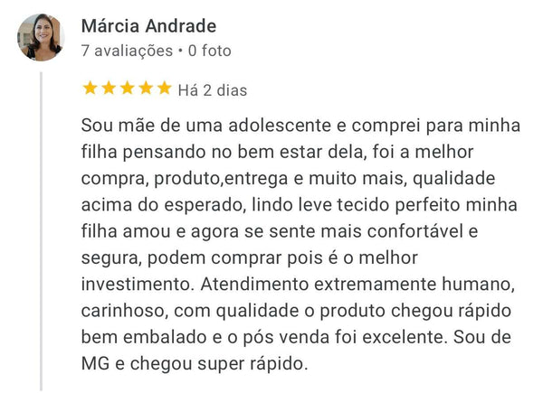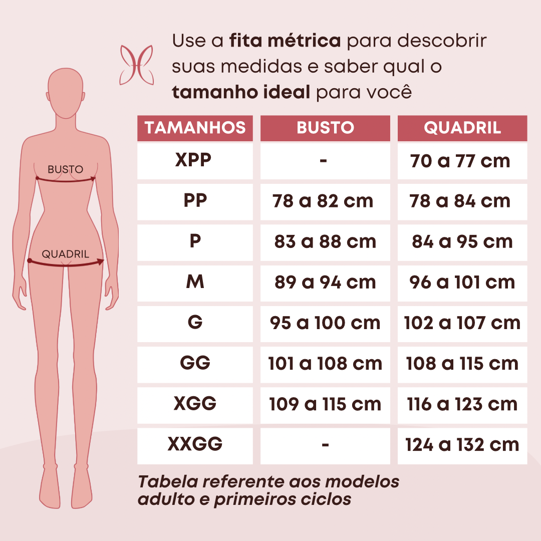 Depois, vem a camada de tecido tecnológico impermeável respirável, que impede o vazamento do fluxo de sangue e, por fim, têm acabamento externo em uma lycra de poliamida super cômoda, com fator de proteção UV50.