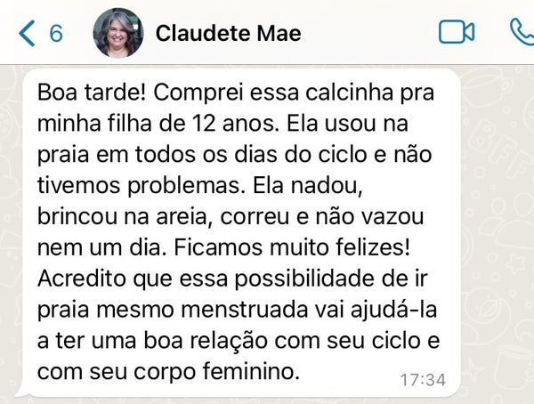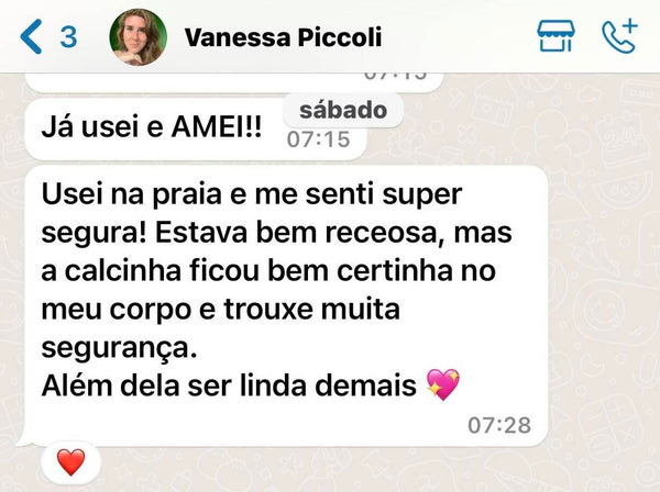 O ideal é fazer alguns testes antes de usar sua calcinha-biquíni na praia. Isso ajuda a entender o tempo de uso e troca que funciona melhor pra você. O tempo vai depender do modelo da calcinha, do tipo de fluxo para o qual ela foi feita e de como está seu fluxo no dia. Lembrando que o tempo de uso na praia é o mesmo do dia-a-dia. Então, quanto mais você testa e conhece seu ciclo, mais segura fica para aproveitar a praia sem preocupações, especialmente em dias de fluxo intenso!