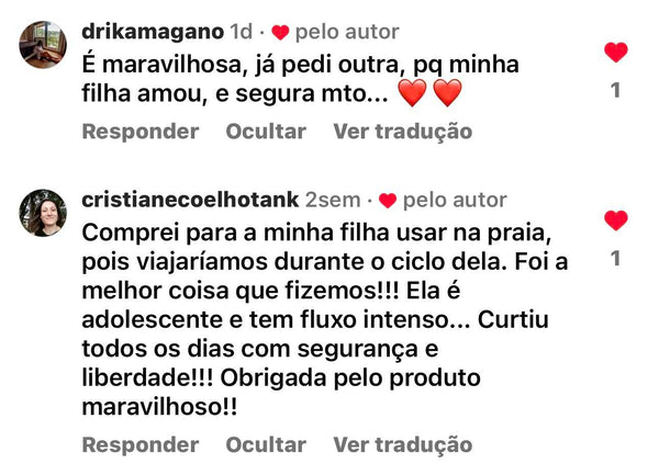 É o mesmo produto, sem nenhuma diferença! Nossas calcinhas absorventes são 2 em 1 e se transformam em biquínis menstruais quando você vai pra água. Você pode usar durante todo o ciclo no dia a dia e, quando bater aquela vontade de um mergulho, elas seguram firme dentro e fora da água, até nos dias de fluxo intenso! Tudo pensado pra te dar liberdade em qualquer momento!