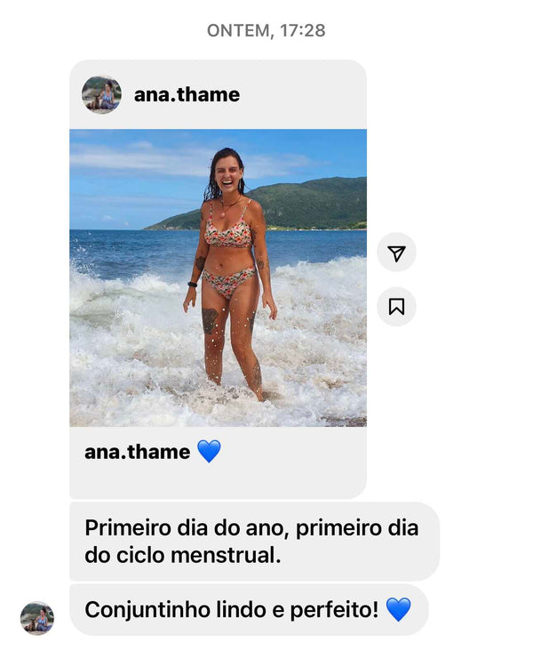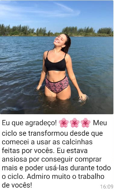 Pode e deve curtir a praia, inclusive nos dias de fluxo intenso! Nossos biquínis absorventes seguram o fluxo, sim! O segredo é escolher a calcinha de acordo com o seu fluxo do dia. Então, se estiver num dia de fluxo intenso ou super intenso, é só optar pela calcinha certa e respeitar o tempo de troca, caso precise fazer a troca. Assim, você aproveita com total liberdade e tranquilidade – sem preocupações!