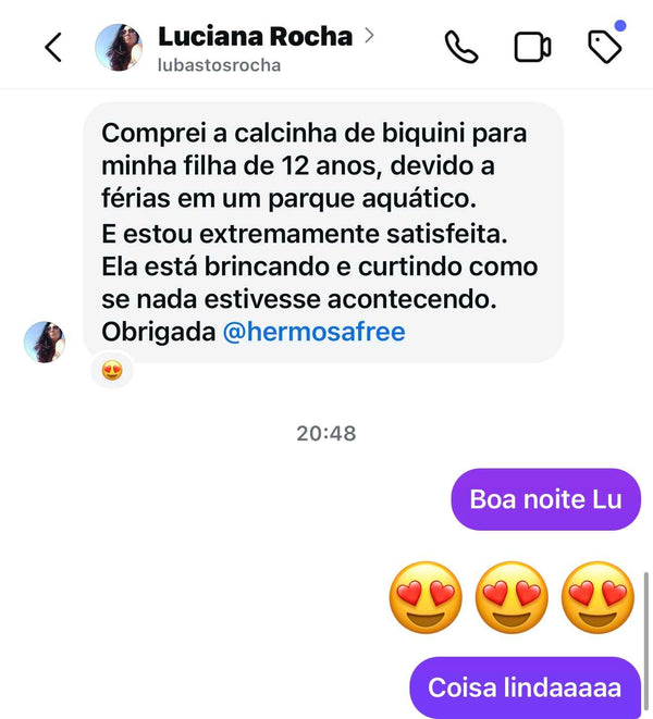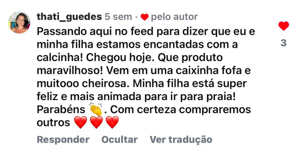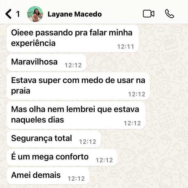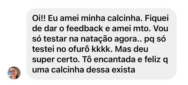 A calcinha deve estar apertada para garantir segurança, viu? Na verdade, se ela apertar, pode acabar ficando desconfortável, e a gente quer que você se sinta bem e segura! O ideal é que a calcinha vista como uma segunda pele: nada de apertos, mas também sem aquela sensação de estar folgada. Então, fique tranquila! Dá uma olhadinha na nossa tabela de medidas, para encontrar o tamanho perfeito, e se precisar de uma ajuda extra, estamos no WhatsApp pra você!