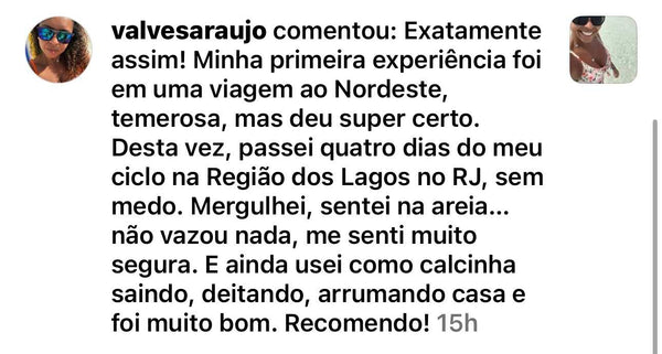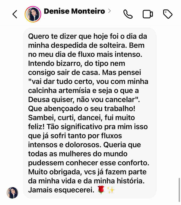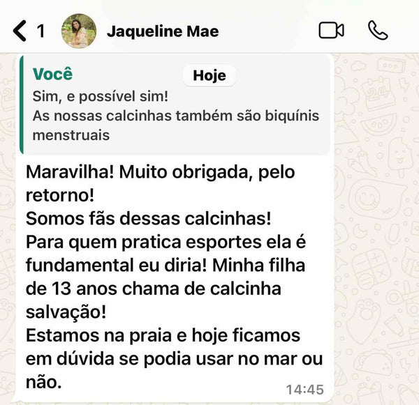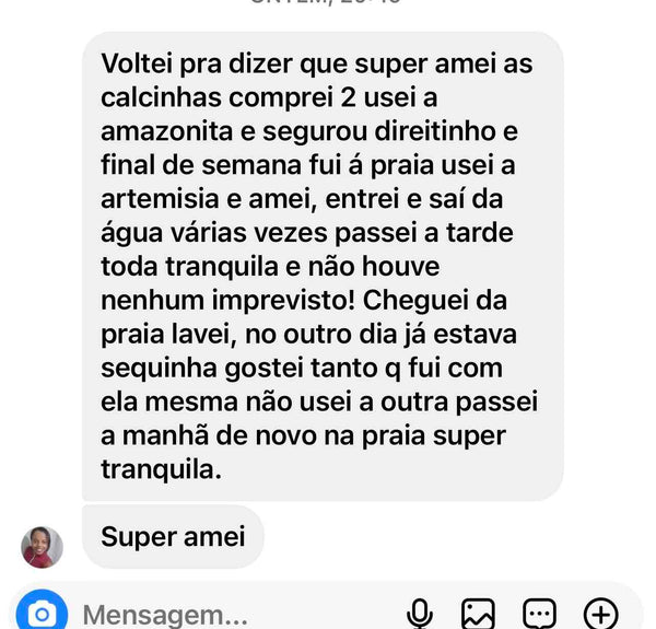 Sim, nossas calcinhas podem ser usadas no pós-parto, e temos um modelo especial feito pra esse momento: a Amapola! Ela é pensada especialmente para as mães, com uma sustentação na barriga que traz segurança sem apertar, além de uma cobertura ampla para o fluxo intenso do pós-parto. E tem mais uma dica: nossa compressa backup Santa é perfeita pra usar junto! Ela não só ajuda a segurar o fluxo, mas também funciona como uma compressa calmante. Dá pra colocar um chazinho tranquilizante e aliviar a vulva depois do parto natural. Tudo pensado pra trazer conforto e cuidado pra você nesse momento especial!